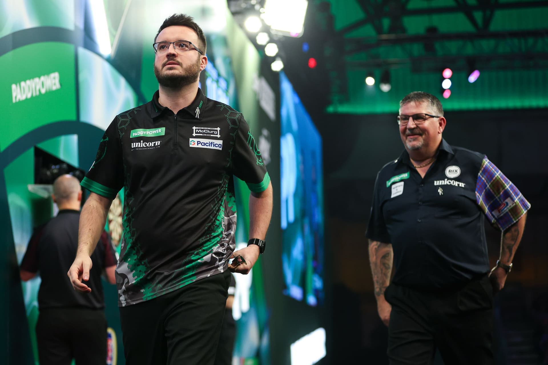 “I was mad at myself. The first set is how they’ve [his darts] been going. They’ve been going well in Scotland with the exhibitions, but the second and third [sets] they were all over the bloody place.”
